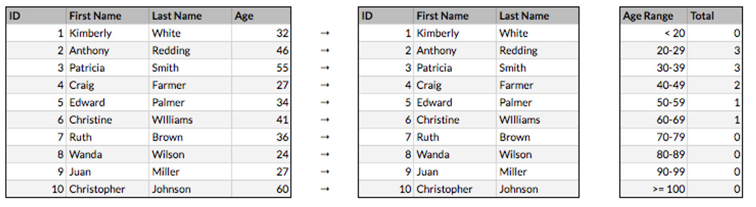 If you wanted to aggregate an existing data set, the same technique could be applied. If there was a data set with users’ names and heights, you’d tally the height counts as before, and record the tallies in a new dataset. Then, you’d permanently delete the height data from the individual user records. The result would be an anonymized summary of users’ heights that would be impossible to tie back to the individual users.